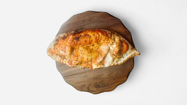 pelati, mozzarella, kuhan pršut, gobe, kisla smetana, origano, oliva